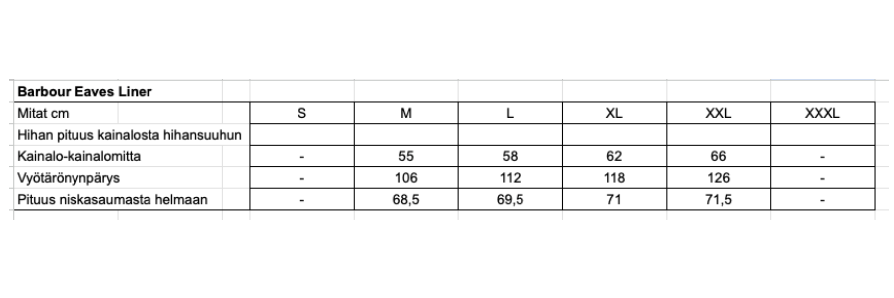 Mitoitukseltaan tämä liivi on hieman istuvampi ja mitaltaan lyhyempi kuin Barbour Polarquilt Waistocoat Zip-In Liner.