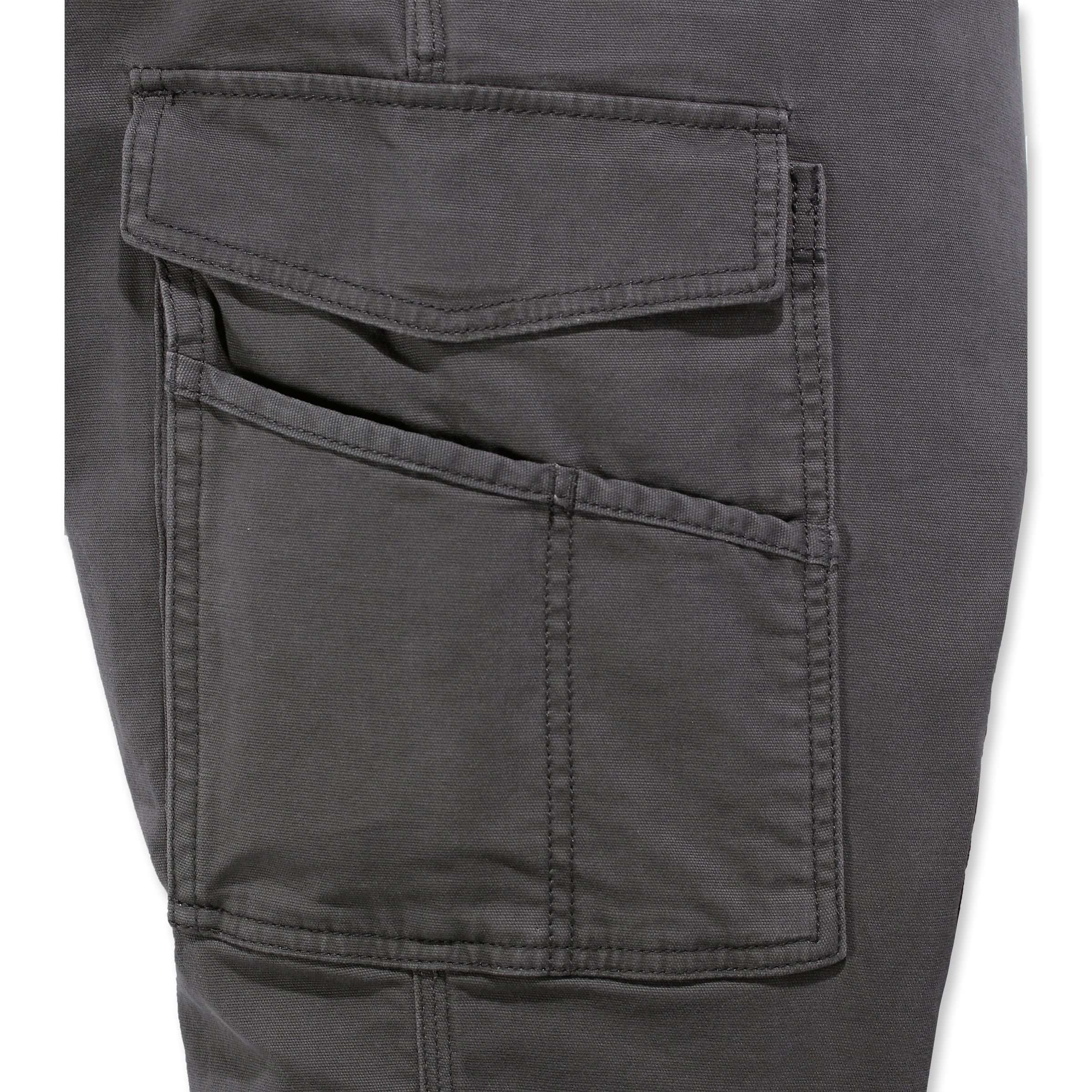 Carhartt Canvas Cargo Work Pant -housuissa on runsaasti vahvistettuja taskuja, joihin saat työkalut, puhelimen ja muut tarvikkeet näppärästi mukaan. Oikean lahkeen cargotaskussa on erillinen puhelintasku ja vasemman lahkeen taskussa lisätasku sekä läppä tarrakiinnityksellä. Vahvistetut takataskut ja kolmoistikatut pääsaumat viimeistelevät kestävän kokonaisuuden.
