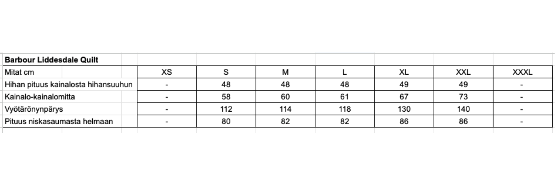 Tämä on Barbourin Country-malliston takki, joten mitoitus on väljä. Jos haluat istuvamman tikkitakin, tutustu Barbour Heritage Liddesdale Quilted Jacket takkiin.