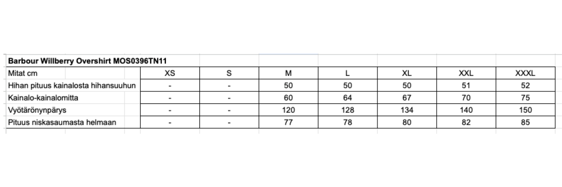 Tarkista tuotteen mitat kuvissa olevasta kokotaulukosta