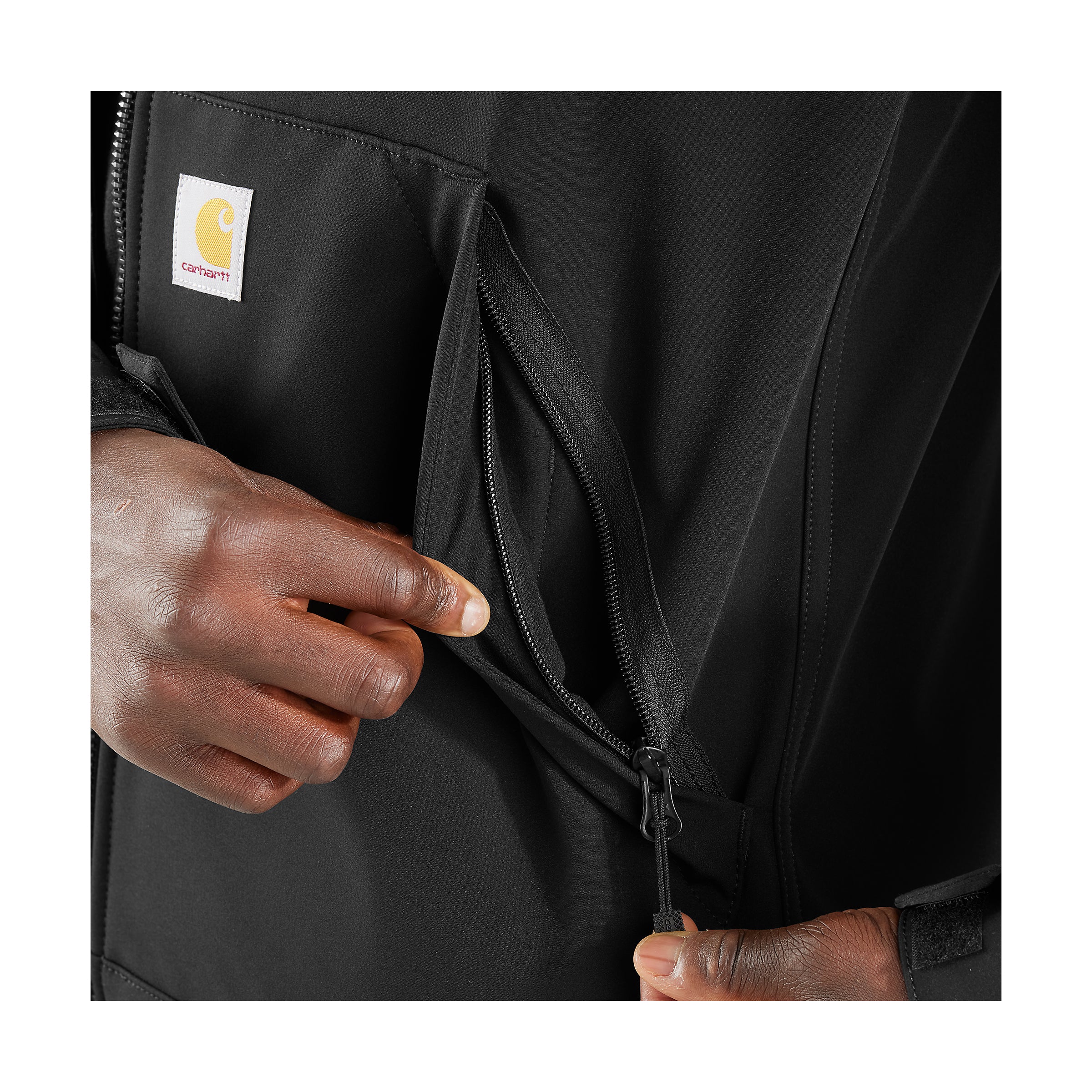 Takki on valmistettu kestävästä 3-kerroksisesta stretch-softshell -materiaalista, joka tarjoaa hyvän suojan säätä vastaan ja samalla joustaa liikkeessä. Carhartt Rugged Flex™ -teknologia lisää liikkuvuutta, joten takki ei rajoita työskentelyä tai aktiivista liikkumista. Relaxed fit -mitoitus antaa reilusti tilaa kerrospukeutumiselle ja liikkumiselle.
