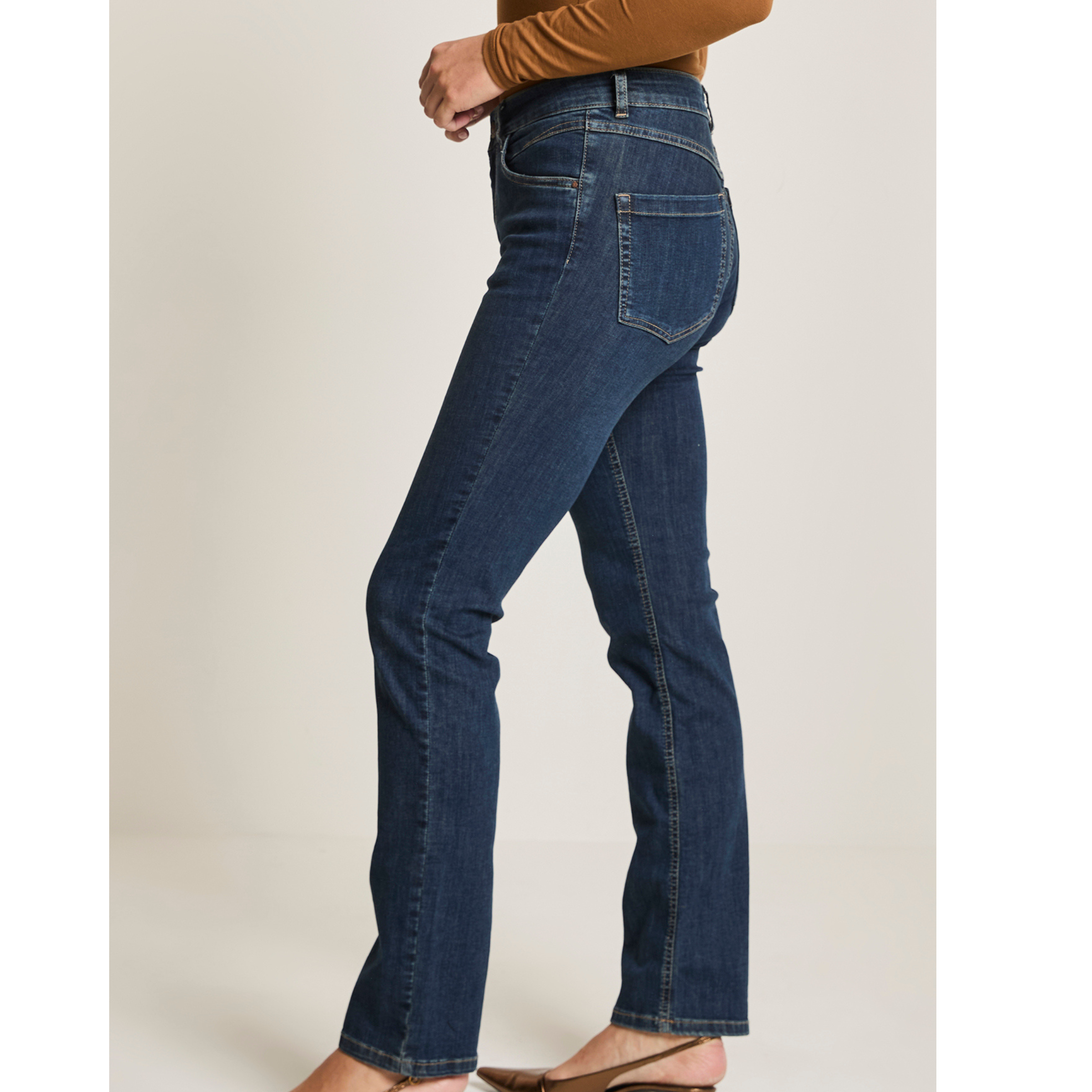 Para Mi Angie farkuissa on klassinen suora malli sekä korkea vyötärö. Tämä perusfarkku on kapeahko reidestä ja malli jatkuu suorana polvesta nilkkaan. Jos Angie mallia vertaa Para Min skinny fit -mallin Celineen, on Angiessa enemmän tilaa reisissä tarjoten sekä tyyliä että käyttömukavuutta. Malli sopii niin arkeen kuin toimistotyöhön.