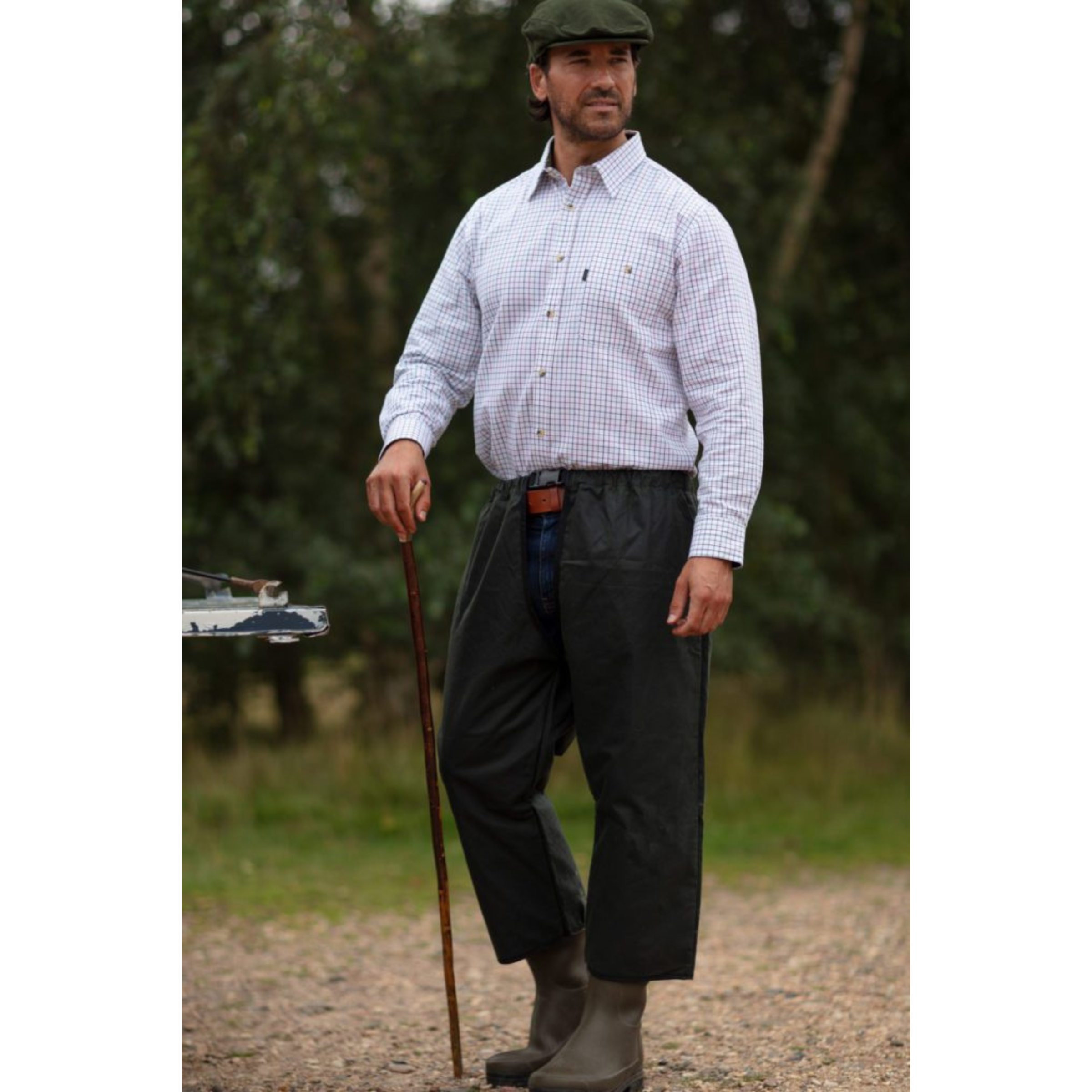 Housuissa on joustava vyötärö nylonvyöllä, avoin haarakappale liikkuvuuden lisäämiseksi sekä musta kiinnityslenkki lahkeiden suissa. Käytännölliset yksityiskohdat tekevät näistä erinomaisen valinnan metsästykseen, ratsastukseen, kalastukseen ja muuhun ulkoiluun.