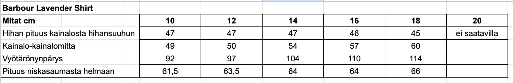 Mietitkö oikeaa kokoa?Tarkista tuotteen mitat kuvakarusellissa olevasta kokotaulukosta!
