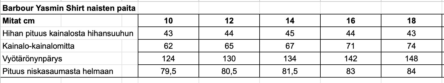 Mietitkö oikeaa kokoa? Tarkista tuotteen mitat kuvakarusellissa olevasta mittataulukosta.