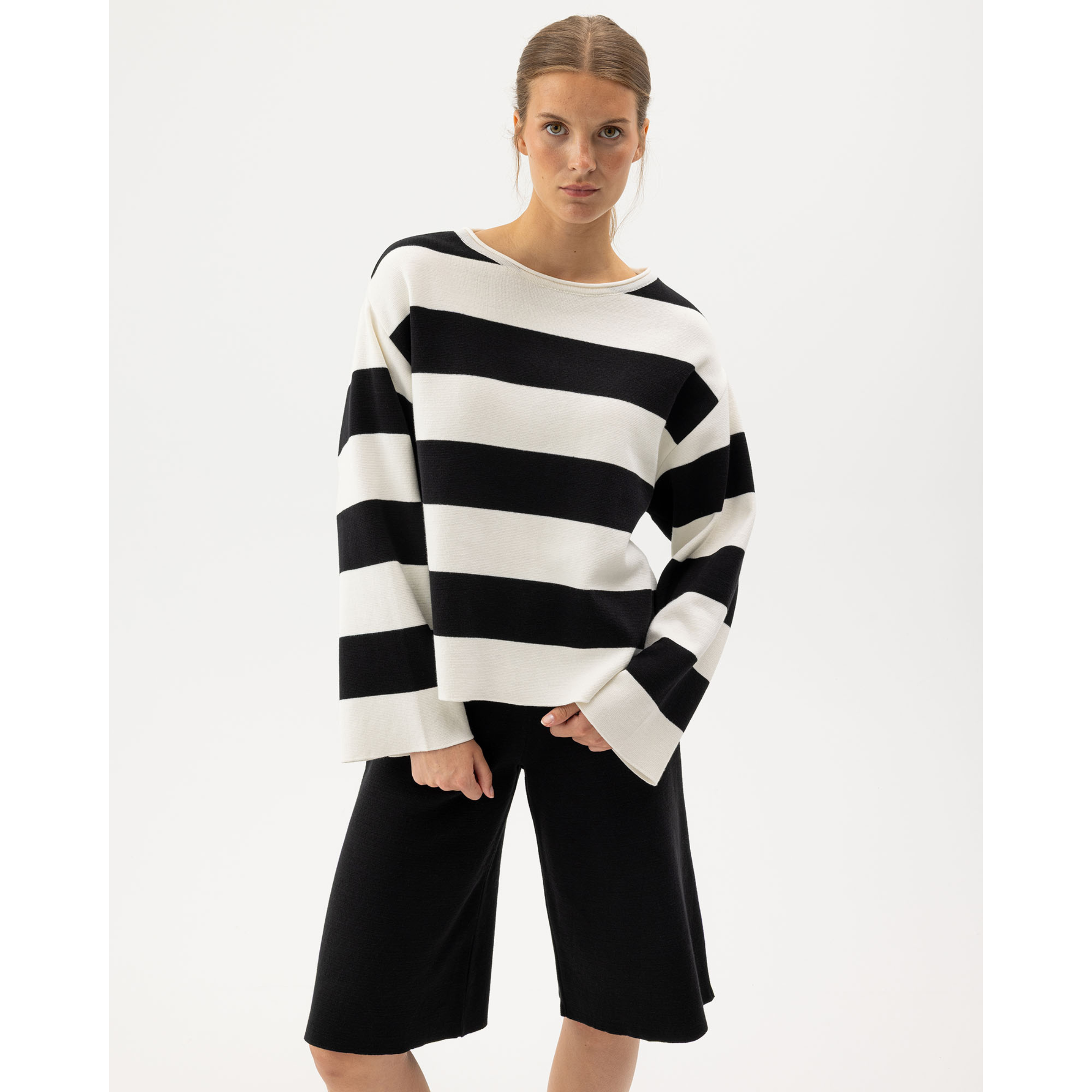 Holebrook Lissie Sweateron korkealaatuisesta 100% puuvillasta valmistettu naisten raidallinen neule. Tämä neule sopii loistavasti yhteen mustien Holebrook Lissie Bermuda shortsien kanssa, mutta sopii hyvin myös esimerkiksi farkkujen tai hameen kanssa.
