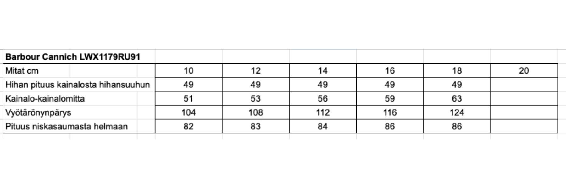 Koko ja mitoitus: tarkista tuotteen mitat kuvissa olevasta kokotaulukosta