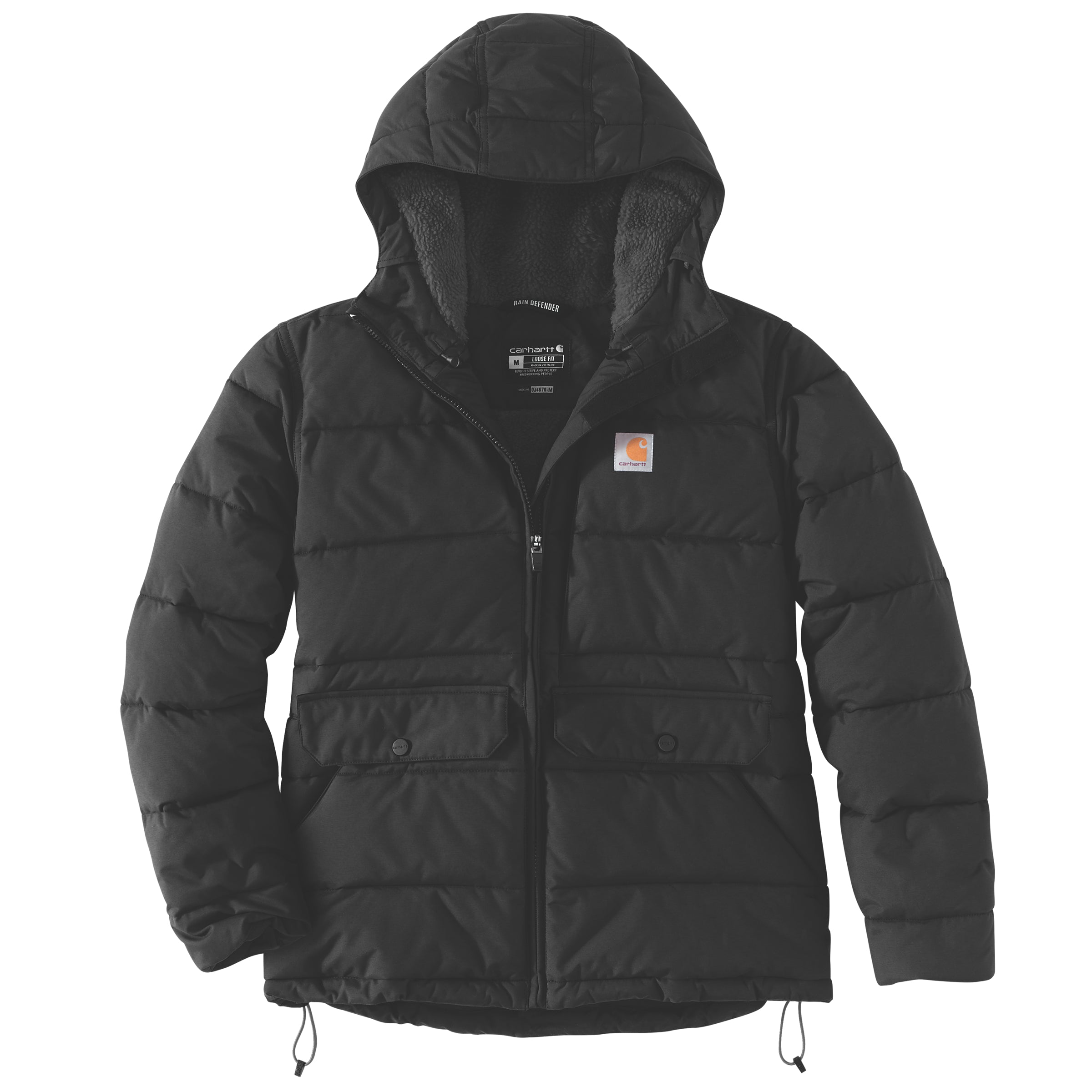 Carhartt Montana Insulated Jacket on täydellinen valinta viileisiin ja tuulisiin päiviin, kun tarvitset lämpöä ja säänsuojaa viheliäiseltä keliltä. Tämä naisten toppatakki on valmistettu kestävästä Carstrong™-nylonista, joka hylkii vettä ja suojaa tuulelta. Synteettinen eristys ja pehmeä sherpa-vuorikangas yläosassa ja hupussa takaavat lämpimän ja mukavan tunteen myös kylmissä olosuhteissa.